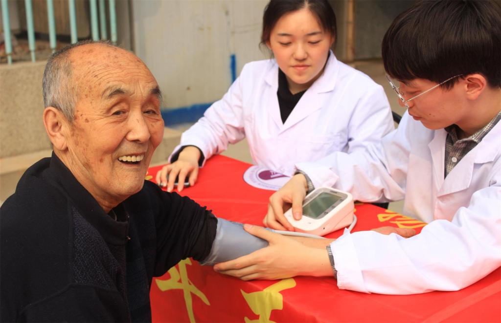 此次义诊活动主要面向学校退休教职工、教职工家属及学校周边社区的老年人。下午两点三十分,阳光正暖,一群身穿白大褂的学生志愿者已早早做好了准备。在学校离退休工作处老师们的组织和帮助下,我校退休教职工及家属们陆续来到了义诊中心。我院志愿服务队此次为老人们提供的服务有测量血压、血糖、血氧以及身高体重,测量工作完成后,志愿者们会根据结果为老人们提供合理的饮食和活动建议。