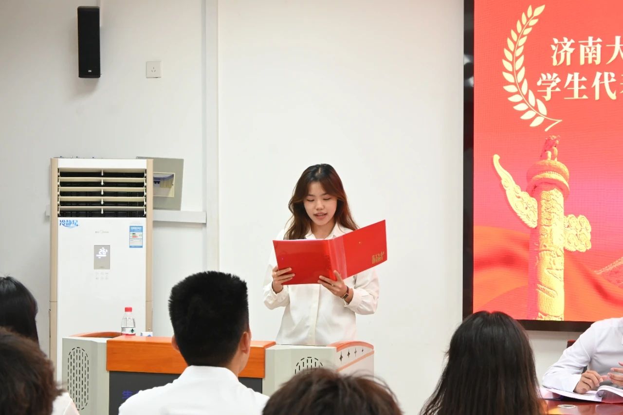 大会在庄严的国歌声中拉开序幕。学生会副主席赵一霏向大会作《学生会工作报告》。