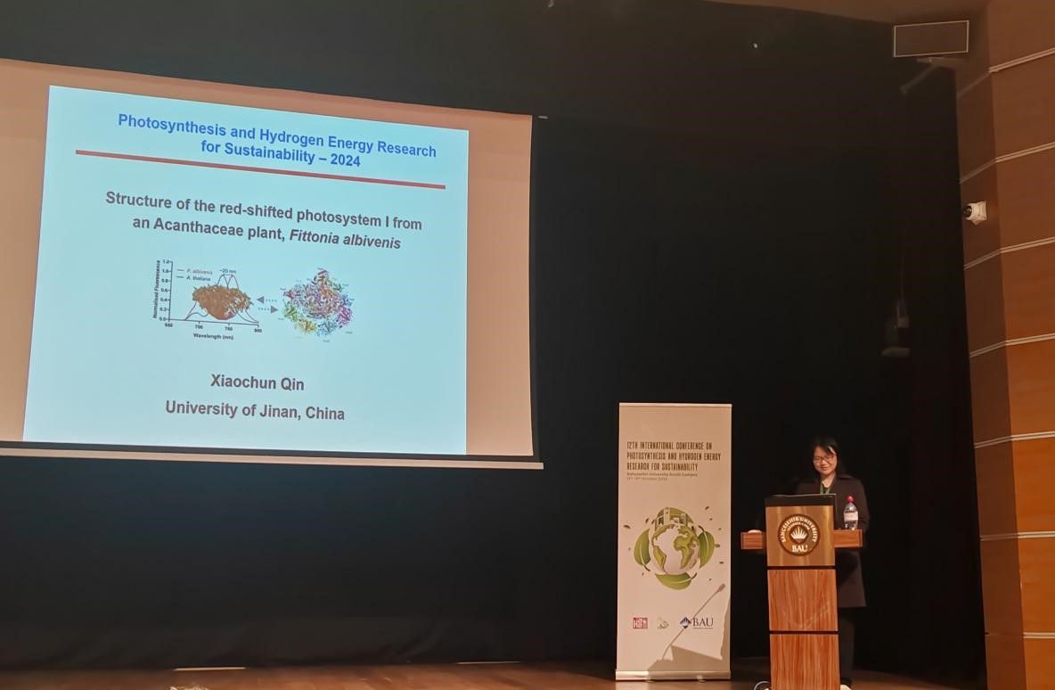 会上,秦晓春教授以“网纹草光系统I及其捕光天线复合物光谱红移的结构基础”为题作学术报告,并主持光合碳代谢与调节专题的报告。团队成员董士尚副教授展示了在光合细菌光反应中心结构解析方面的最新研究成果,引发了与会专家学者的浓厚兴趣与热烈反响。