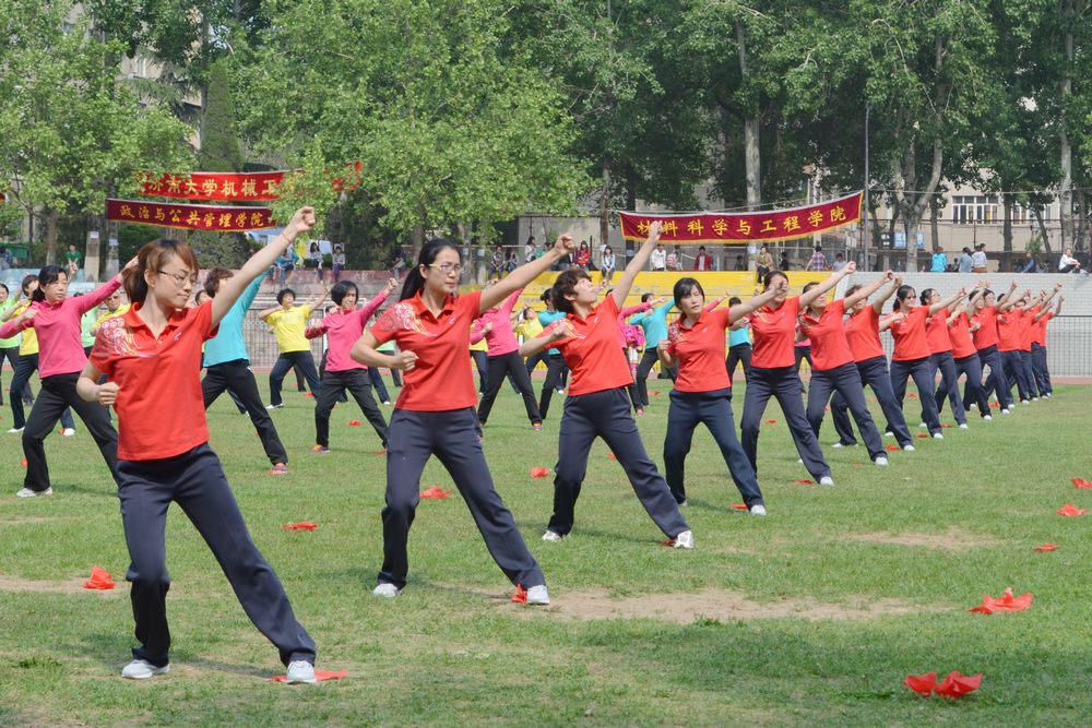 4月28日下午,米兰milan官方网站教职工广播体操比赛在学校运动场进行。我院代表队16位老师着装统一、精神饱满地参加了比赛,最终获得三等奖的良好成绩。这是我院成立以来首次参加学校大型群众体育比赛,不仅让老师们锻炼身体、放松身心,更展现出了新学院朝气蓬勃、富有青春活力的精神面貌。