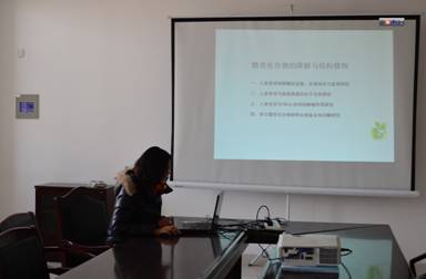 2016年12月2日下午,学院在特教楼B1006举办了“青年教师学术沙龙”第十六次活动,本次沙龙活动邀请青年教师高娟博士做了题目为“糖苷化合物的酶法制备”学术报告。学院2015年1月1日以后正式入职的教师、人力资源管理办公室和科研管理办公室的负责老师参加了本次沙龙活动。活动由科研管理办公室主任闫峰老师主持。
