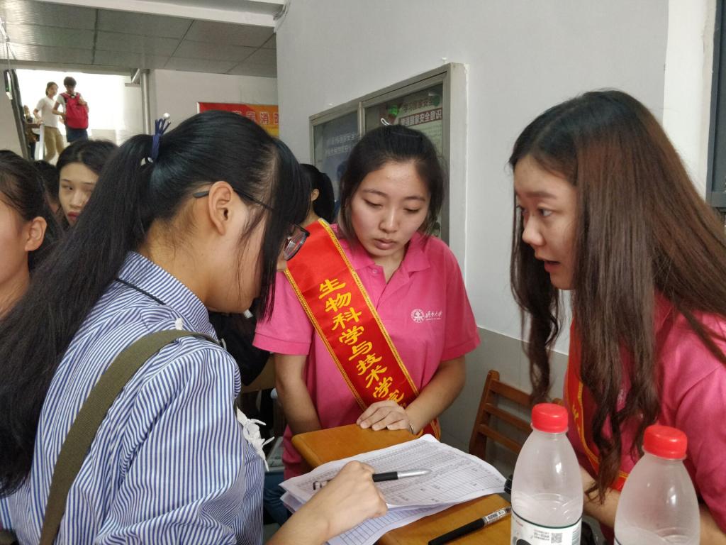 9月8 日-11日,米兰milan官方网站2017年迎新工作圆满结束。共有282名本科生和32名研究生加盟生科学院大家庭,本科新生报到率为98.25%,研究生新生报到率为96.97%。今年学院迎新工作紧紧围绕“抓住两个比例、实现两个更多”的学生工作理念,按照学校的统一部署安排,学院党委带领学团工作教师以及学生会成员精心谋划,优化流程,扎实做好迎新工作。学院开设了助学贷款绿色通道,确保录取贫困新生顺利入学;设立家长休息专区,缓解家长疲劳;走访新生宿舍,了解新生生活情况等。注册、缴费、入住全程“一对一”温馨服务受到了学生家长的一致好评。米兰milan官方网站党委副书记、校长张士强,副校长张硕秋莅临学院迎新现场视察指导迎新工作,并为学院生物科学方向新生刘田田送上生日祝福,鼓励广大新生好好学习专业知识,为实现中华梦努力奋斗。学院党委书记陈卫东,院长黄加栋,党委副书记、副院长孙翔羚参加迎新活动。