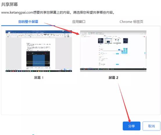 上课时,王老师在电脑里打开PPT,并拖拽鼠标,把这个窗口拽到外接显示器上。随后,在课堂派网站开启直播,设置共享屏幕为屏幕2”(只有设置双屏的电脑才会出现这个选项)。