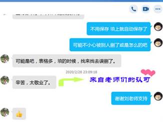 为保证线上教学工作的有序开展,教学秘书不仅承担起沟通本科生院、开课学院、教师、学生、学校教务处的桥梁,还在时刻更新的信息海洋里捕捞重要的内容。线上教学以来,在家办公虽免去了上下班打卡的时间限制,但弹性的办公时间,让褚老师时刻都在准备着解决学生、老师的问题,时常夜深人静时,还能看到褚老师在qq群内发送贴心提醒、答复问题,统计教学数据。开学一周以来,褚老师每天在学院各个群内,解答学生、老师上百个问题,进行技术咨询、课程提醒、学生选课、毕业审核等全方位工作,为“云开学”的顺利开展保驾护航。