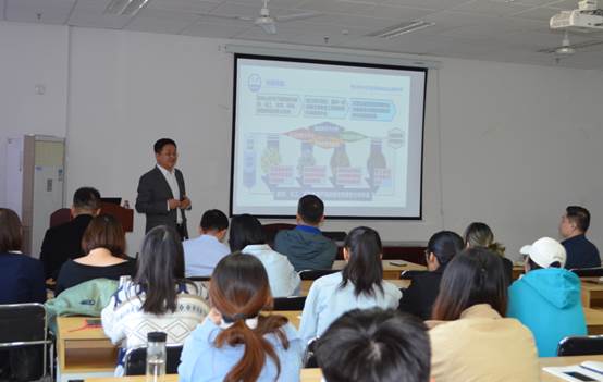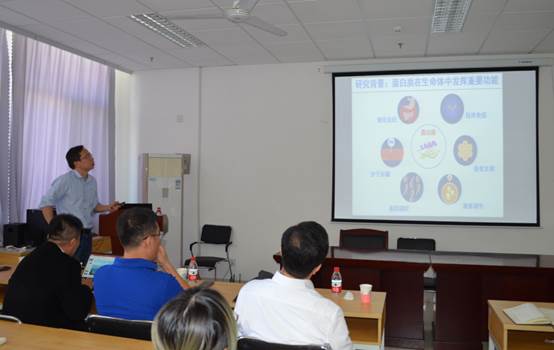 吕雪峰副所长首先介绍了中国科学院青岛能源与过程研究所的发展定位以及学科分布和科研现状,然后作题为“微生物生物合成技术与绿色生物制造”报告,以螺旋藻规模培养制备甘油葡萄糖苷、蓝细菌高温高光逆境适应机制的解析与优化、植物源杀虫剂大黄素甲醚的微生物合成、蒽醌类天然产物开环新机制等研究展现了基础研究和应用研究有机融合;徐健主任作了题为“拉曼组学(Ramanomics):从原理到仪器”的报告,创造性的提出了拉曼组作为细胞群体/群落功能快速探测新手段的新视角;李福山组长作题为“海洋大藻能源与资源化利用”报告,从嗜热微生物资源的挖掘、多糖裂解酶热适应、热稳定性机制的解析、酶法制备海藻寡糖工艺等方面介绍了在海洋大藻开发利用方面所做的研究工作;姚礼山组长作题为“蛋白质相互作用检测与计算模拟”的报告,从盐键的温度依赖性机制、蛋白质氢键协同性检测等方面展现了在蛋白质相互作用检测与计算模拟方面的研究工作。报告结束后专家与参会老师和同学就报告中涉及的研究进行了深入交流探讨,现场气氛热烈,与会教师和研究生收获良多。