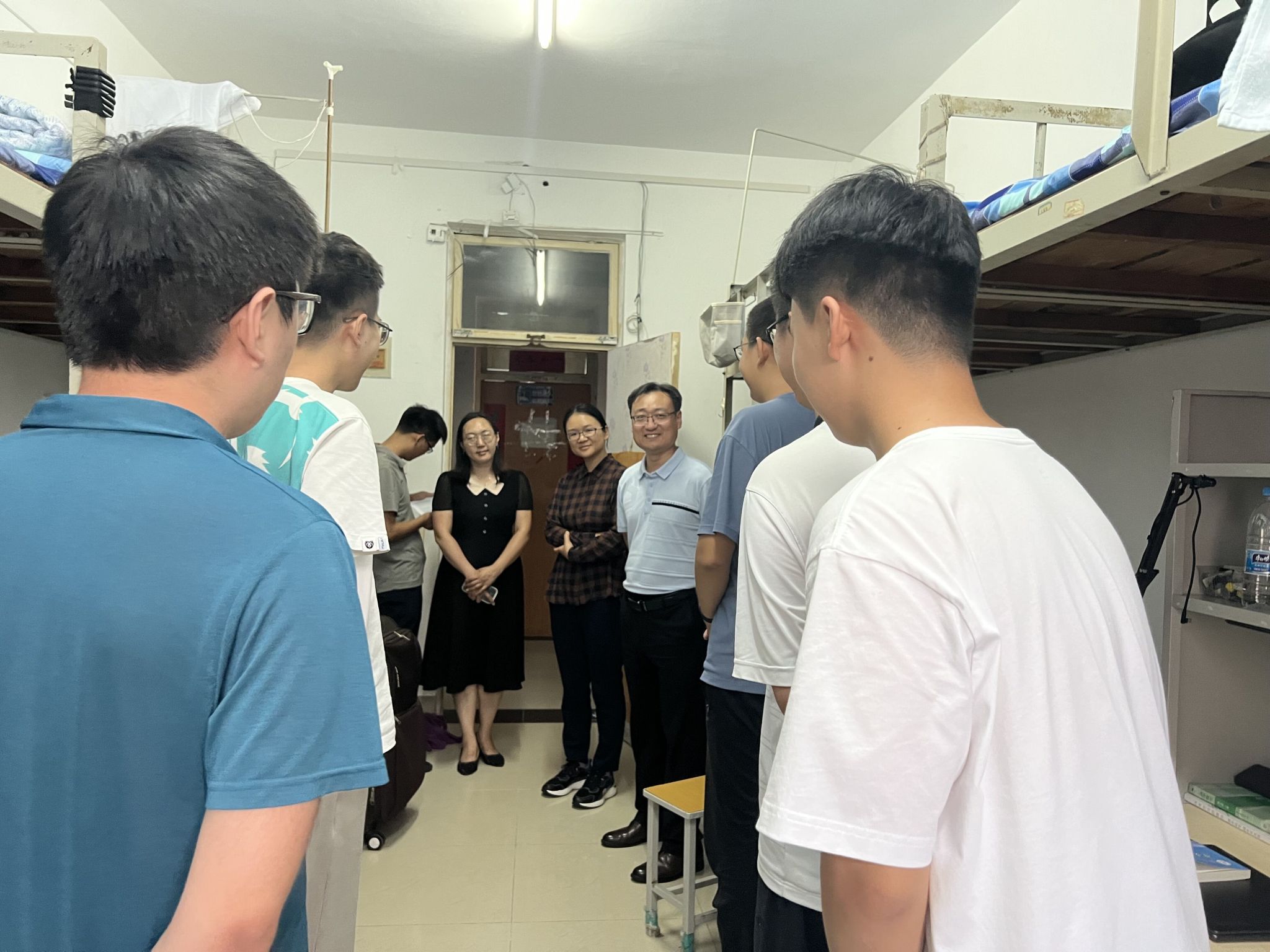 在本科新生宿舍走访期间,学院领导老师与学生亲切交流,了解他们的家庭情况、所学专业及入校感受等,提醒学生要严格遵守学校的规章制度,注意宿舍卫生,强化宿舍安全意识和自我保护意识,并就学生提出的生活和学习方面问题进行解答。史国普书记鼓励同学们尽快适应大学学习及生活状态,积极营造健康向上的宿舍文化,相处出真挚和谐的宿舍友谊。希望同学们在新的环境中认真学习、健康成长,全面提升自我,争做时代新青年。