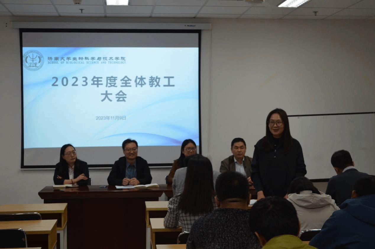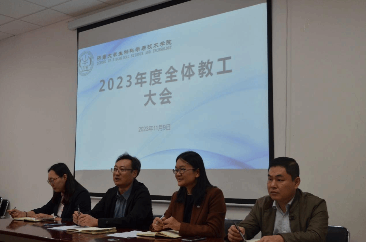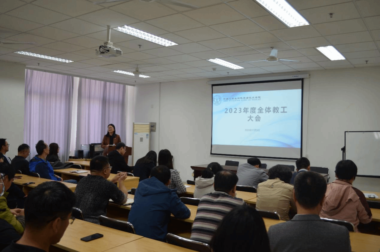 2023年11月9日下午,米兰milan官方网站在特教楼B1010教室召开全院教职工大会,学院党委书记史国普,院长秦晓春,党委副书记、副院长武芳,副院长李强以及全院教职工参加。本次会议由史国普主持。