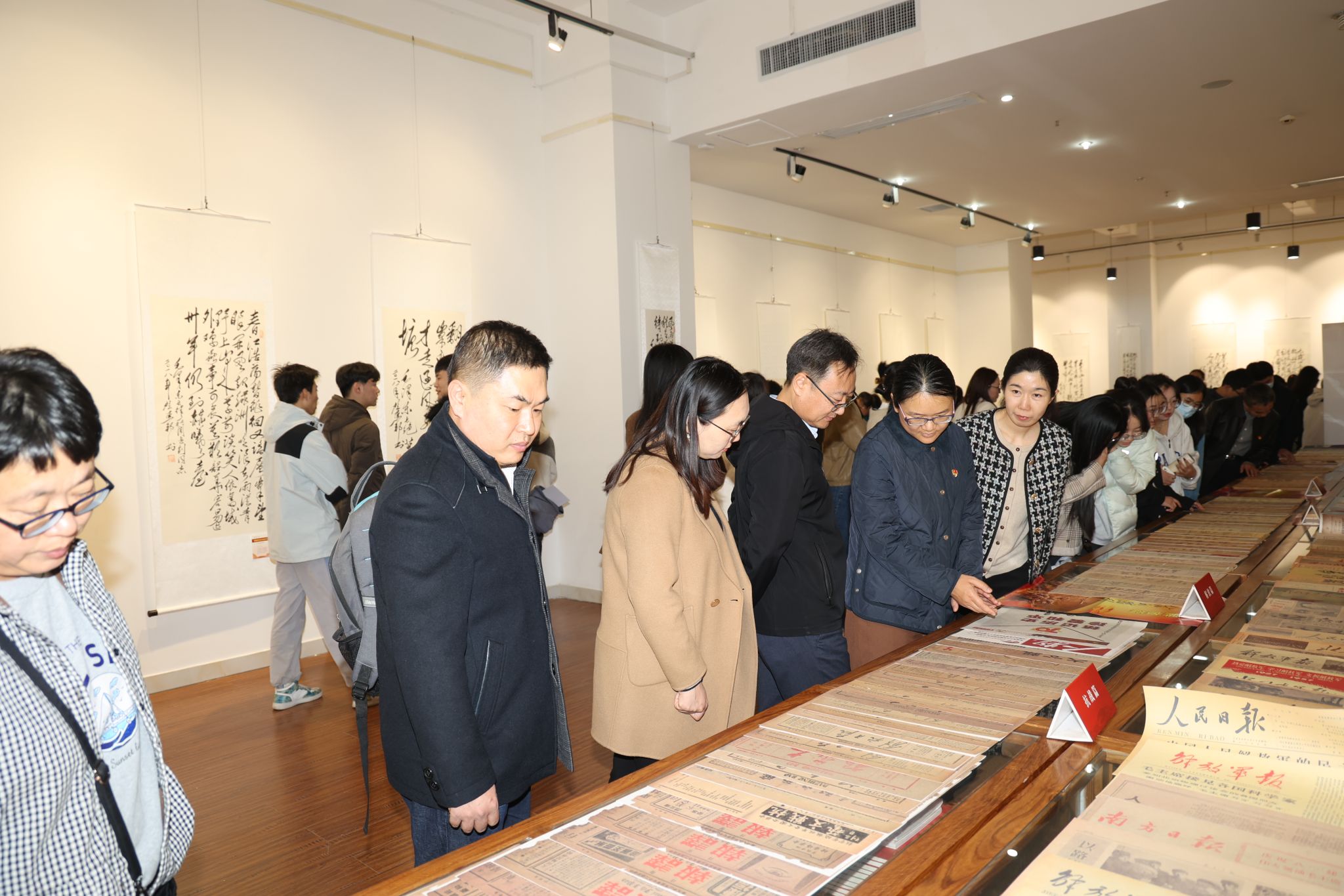 为深入学习贯彻习近平新时代中国特色社会主义思想和党的二十大精神,以学思践悟筑牢信仰之基,进一步提升党员党性修养,11月21日,米兰milan官方网站党委组织全体师生党员开展主题党日活动,参观贺惠邦先生手书毛泽东诗词楹联题词作品展、《没有共产党就没有新中国》百年馆藏报纸展以及米兰milan官方网站办学75周年成就展。学院党委班子成员、组织员、各支部书记、全体师生党员参加此次活动。