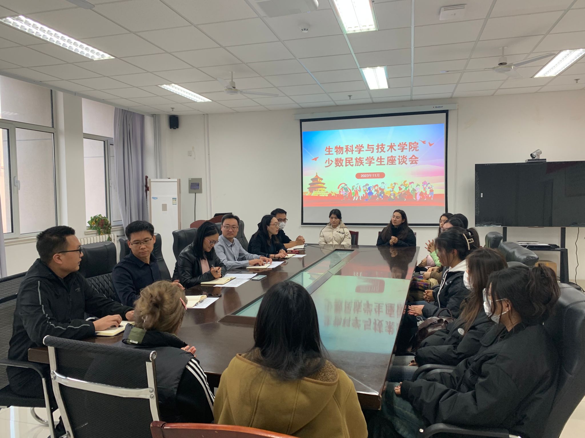 活动伊始,院长秦晓春代表学院向参与座谈的学生表示亲切欢迎,并介绍了学院专业设置、师资力量、学科建设等基本情况。她谈到,学院始终高度重视少数民族学生的成长和发展,期待各民族学生能在生科院大家庭中相互尊重,融洽相处,实现各美其美、美美与共、凝心聚力、共赴未来的发展局面。