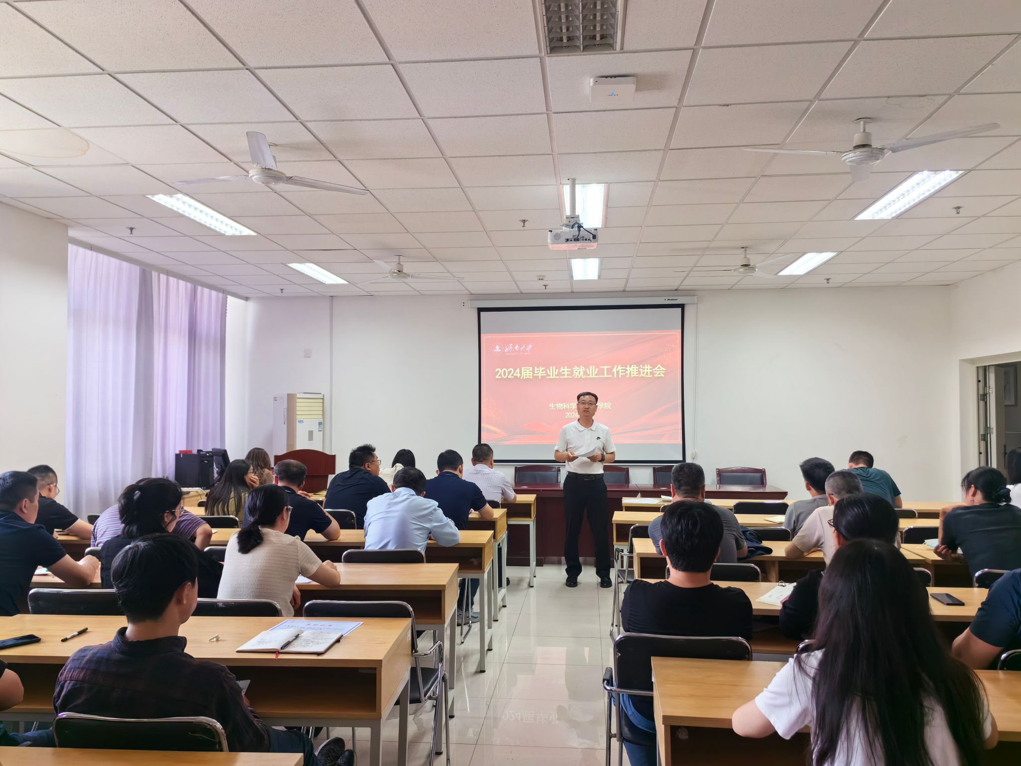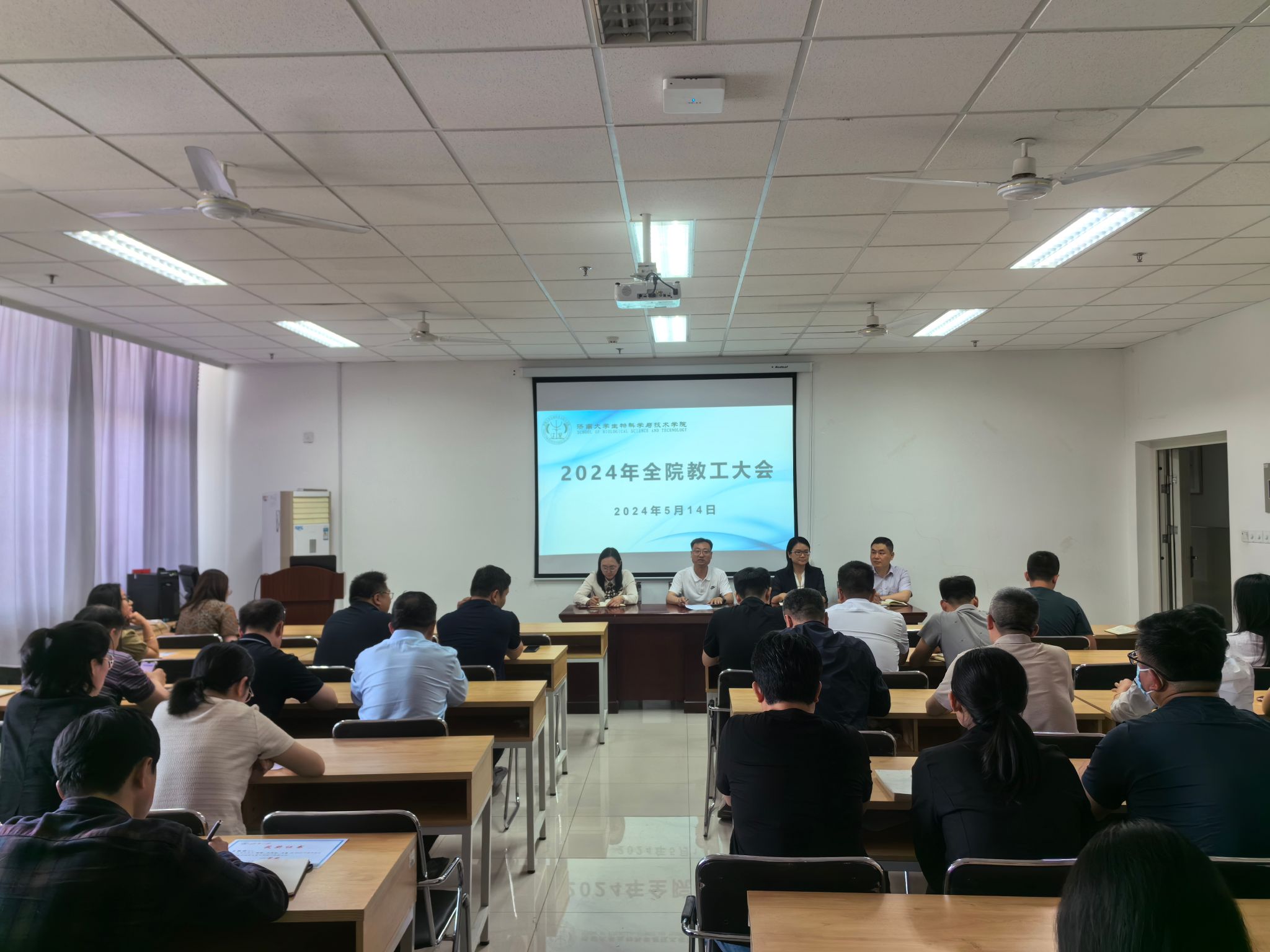 2024年5月14日,米兰milan官方网站在特教楼B1010会议室召开全院教职工大会,全面部署本科教育教学评估、实验室安全管理、科研、研究生教育、学生就业工作推进等方面工作。会议由党委书记史国普主持。