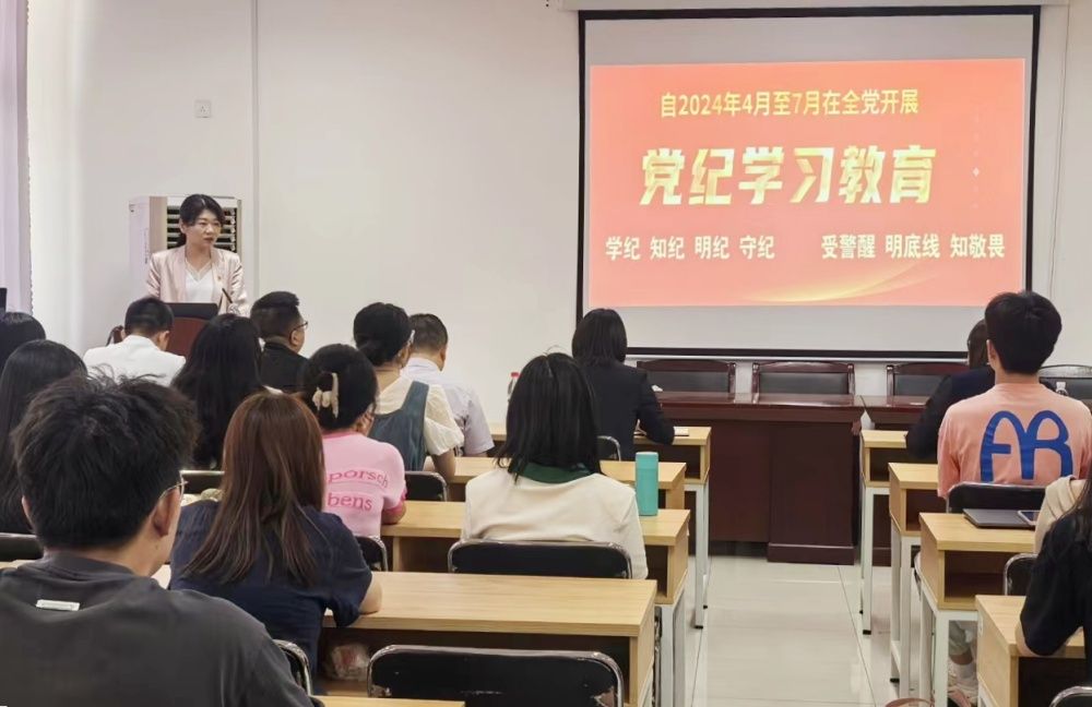 孙菲菲从党的纪律建设的特征、内涵和发展讲起,详细解读了《中国共产党纪律处分条例》修订的重要意义,以案例的形式全面剖析党的纪律的深刻内涵。最后,她勉励全体党员要将党的纪律内化于心、外化于行,牢固树立规矩意识、底线思维和红线意识,在工作和生活中不踩底线,不碰红线,遵规守纪,履职尽责,做一名合格的共产党员。