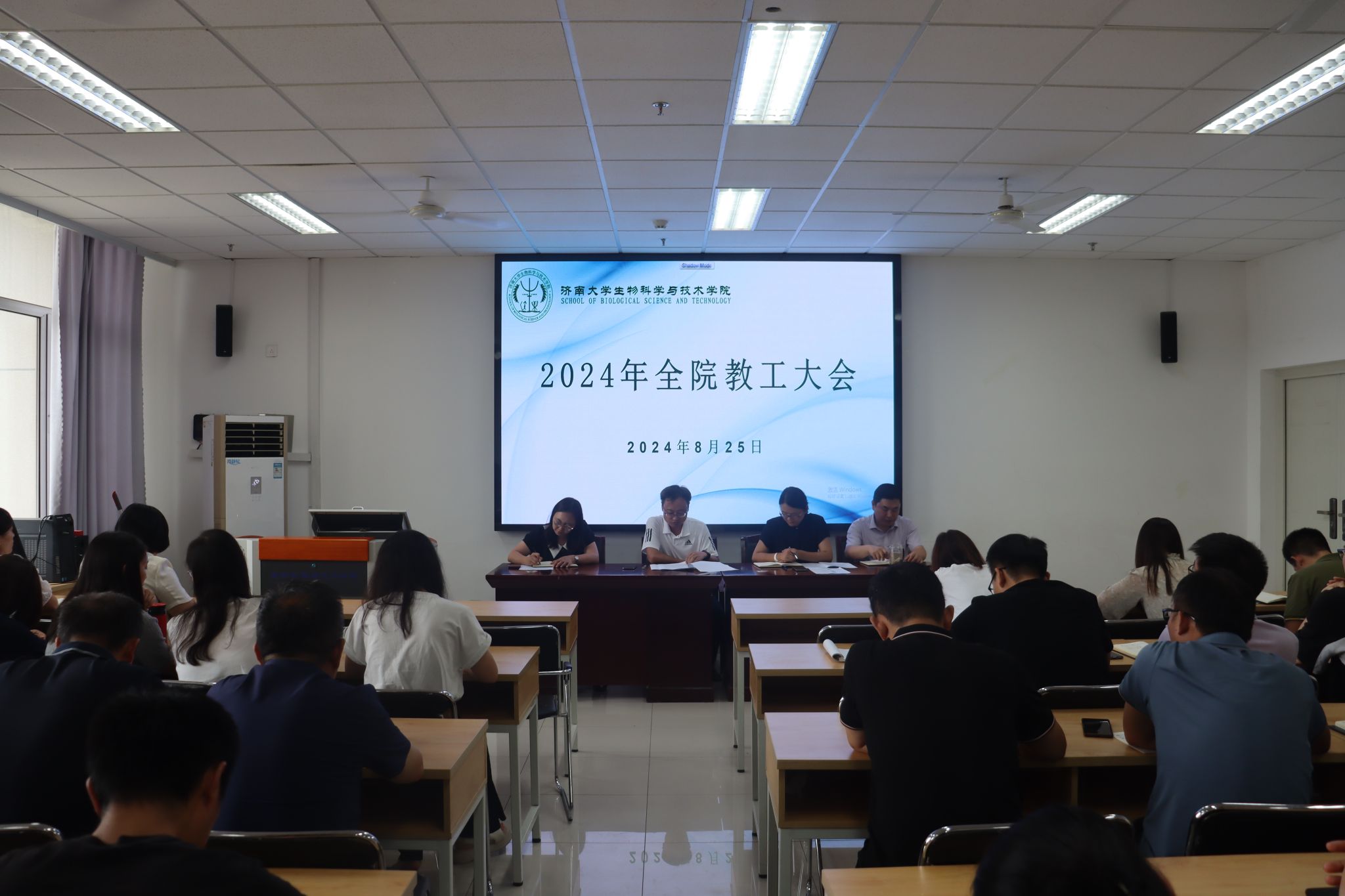 8月25日,米兰milan官方网站召开全体教职工大会,传达学习学校四届五次全委会扩大会议精神,总结上半年工作情况,并部署新学期重点任务。学院领导班子成员、全体教职工参加会议,会议由学院党委书记史国普主持。