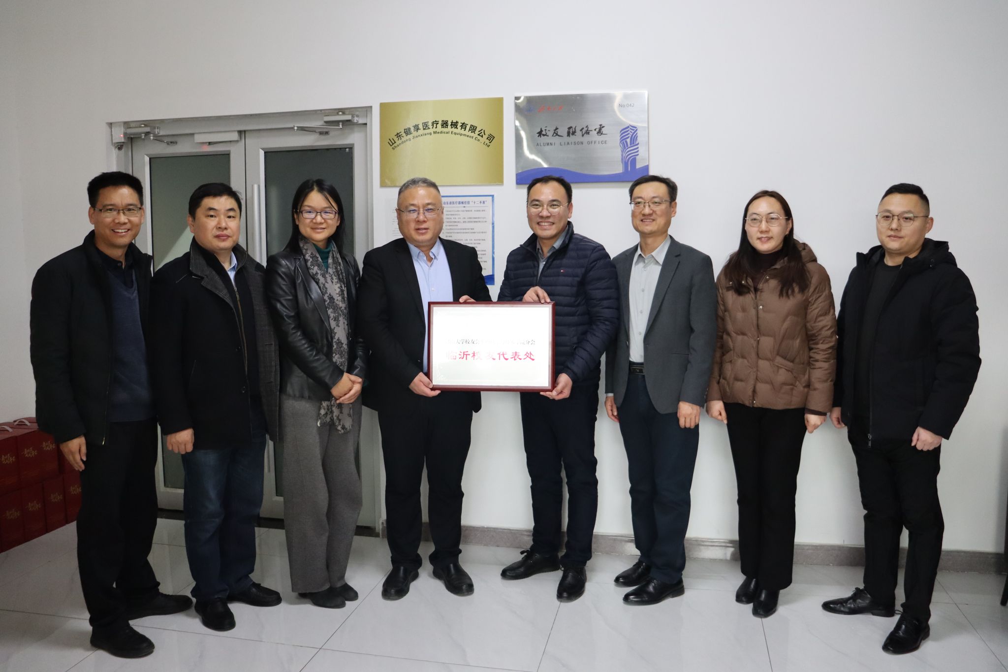 1月14日,米兰milan官方网站校友会米兰milan官方网站分会临沂校友代表处在山东健享医疗器械有限公司成立。学校党委常委、副校长黄加栋出席活动,米兰milan官方网站临沂校友会会长李子燕、米兰milan官方网站临沂校友会秘书长、米兰milan官方网站校友会米兰milan官方网站分会副会长2012届校友李衡、学院班子成员、教师代表、临沂校友代表参加活动。