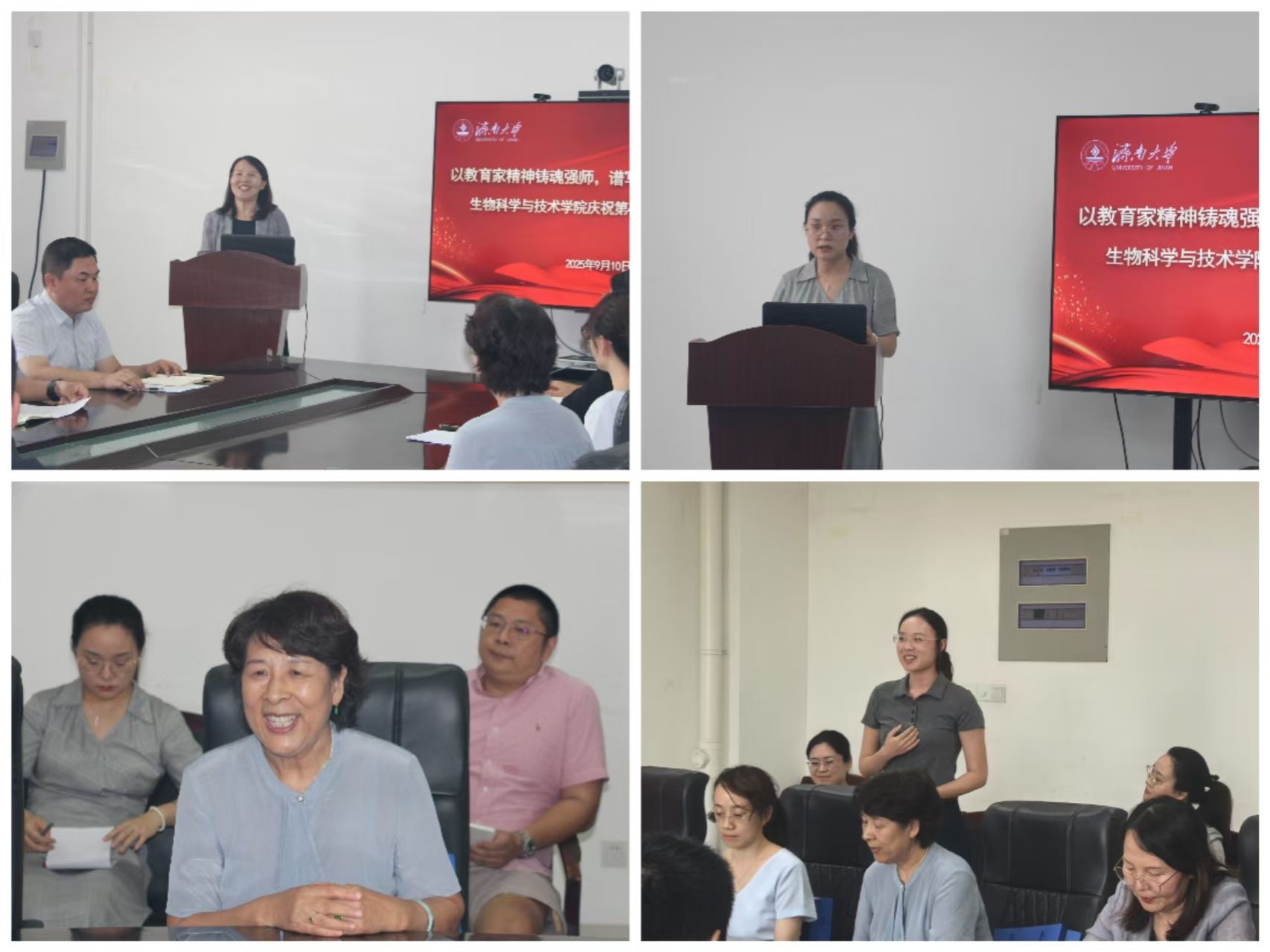 最后,学院党委书记史国普向过去一年来为学院事业发展辛勤耕耘、无私奉献的老师们致谢。他指出,今年的教师节,对我们具有特殊内涵和深刻意义,是实现“十四五”规划任务目标的收官之年和“十五五”前瞻规划的起步之年,也是学院冲刺学位点建设的攻坚之年。他强调,站在新的历史起点上,每一个生科人都应当坚持三个“始终”。一是始终葆有“躬耕教坛、强国有我”的崇高理想,发扬教育家精神,以赤诚之心投身教育事业,将学生成长作为毕生追求;二是始终秉持“育人为本、德育为先”的教育理念,把立德树人融入科学知识教育、社会实践教育的各个环节,绵绵用力、久久为功,培养德才兼备的时代新人;三是始终弘扬“严谨治学、追求卓越”的学术精神,不断精进专业技能,着眼学术前沿和国家重大需求,取得更多原创性成果。